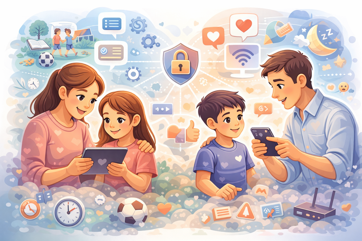 Peran orang tua juga mencakup perlindungan privasi dan keamanan digital. UNICEF mengingatkan bahwa dunia online memberi banyak peluang, tetapi juga membawa risiko mulai dari privasi, keamanan, sampai konten berbahaya. Dalam panduan privasinya, UNICEF menekankan bahwa setiap klik, unggahan, dan komentar meninggalkan jejak digital yang sulit dihapus; karena itu orang tua perlu membantu anak melindungi identitas dan data pribadinya. Langkah-langkah yang dianjurkan sangat konkret: memperbarui perangkat, meninjau pengaturan privasi dan izin aplikasi, mengaktifkan kontrol orang tua bila perlu, memakai kata sandi yang kuat, dan membiasakan anak berhati-hati terhadap permintaan akses kamera, mikrofon, lokasi, dan kontak. Dengan kata lain, mendampingi anak di era gadget berarti juga mengajarkan kebijaksanaan digital, bukan sekadar sopan santun digital (UNICEF, n.d.-a; UNICEF, n.d.-b).